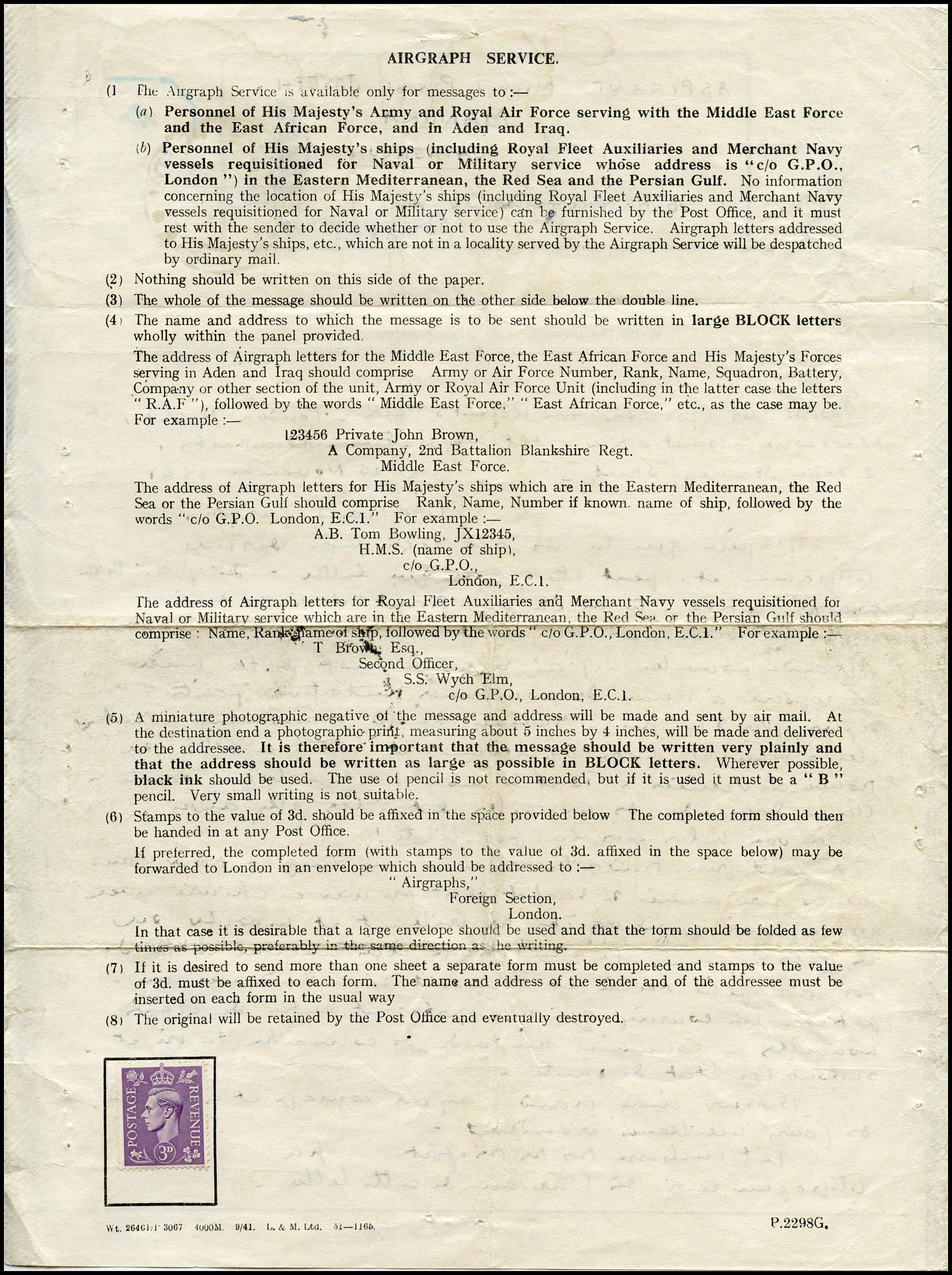 Il arrive que le destinataire d'un Airgraph ne soit pas (encore) desservi par une unité photo proche. Le document, plié en quatre et agraffé pour ne laisser apparaitre que l'adresse est alors envoyé par la voie postale ordinaire.
