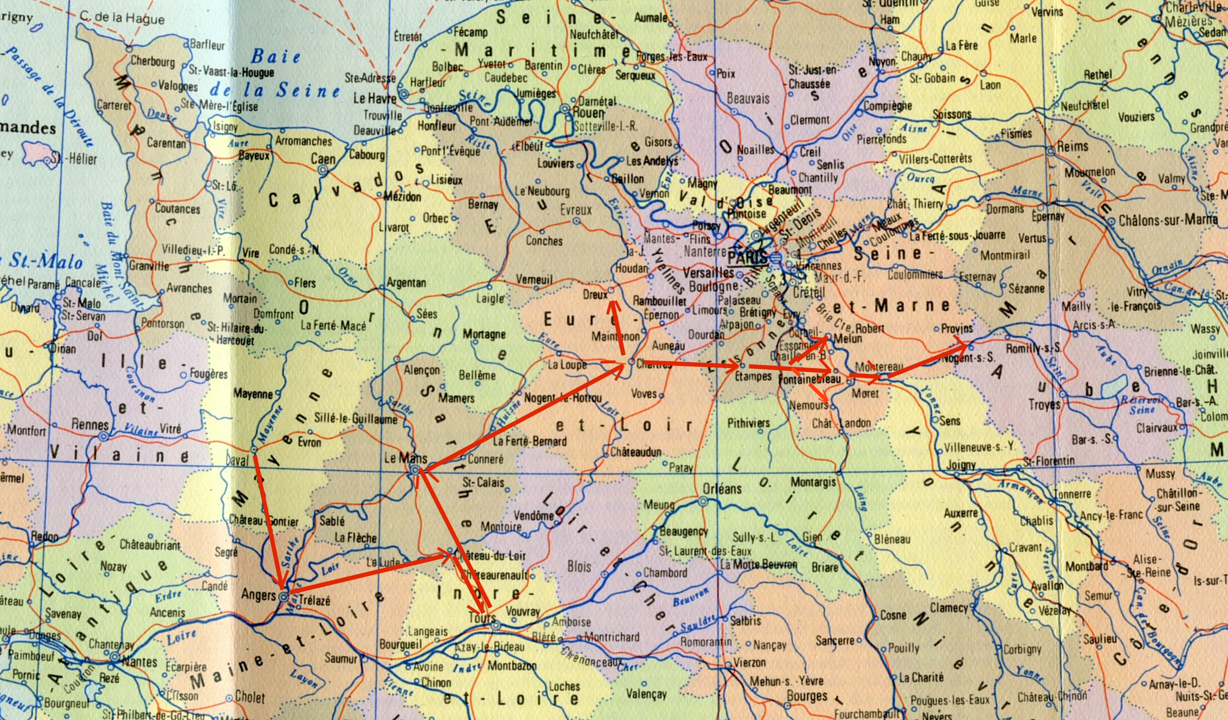 Après Cherbourg il se rend à Coutances, Avranches, Rennes et Nogent-le-Rotrou.